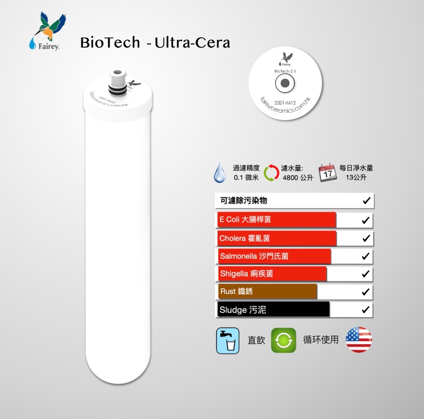 內部加厚瓷壁作為軟濾, 有效將細菌阻隔在瓷壁孔徑上, 達到抗菌